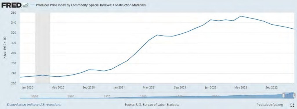 While construction material prices have increased dramatically since the beginning of the pandemic, builders have seen some recent declines despite overall inflation.